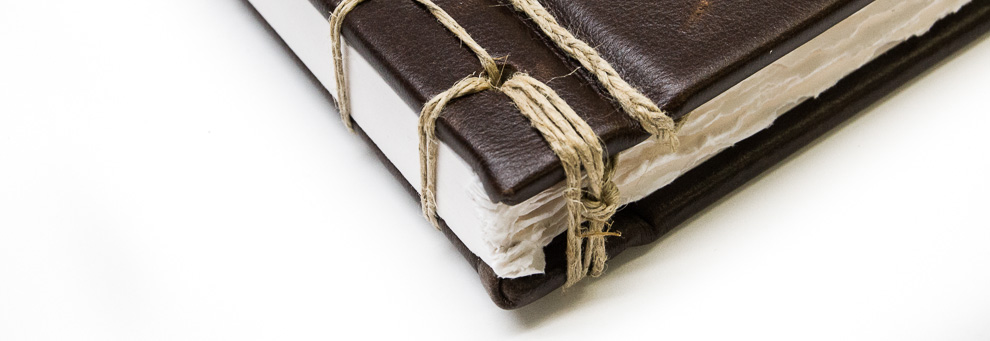 Available in two binding styles, the books come with options of ribbon, hemp string, or leather strapping around the spine.
