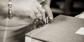Inspired by Japanese and French bookbinding techniques, all books are hand bound using our own unique style of stitching with a superb patterned lace that is stitched through both cover and book to give the book a combination of strong support and exquisite presentation.