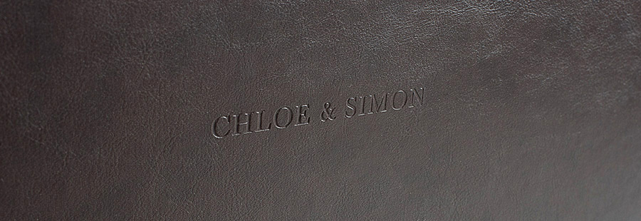 Create a personalized or unique cover by foiling text or a pattern in clear, gold, silver or black on selected materials. For a more subtle look, consider the option of blind embossing. Names, dates and event description in selected fonts can be placed anywhere on the cover.